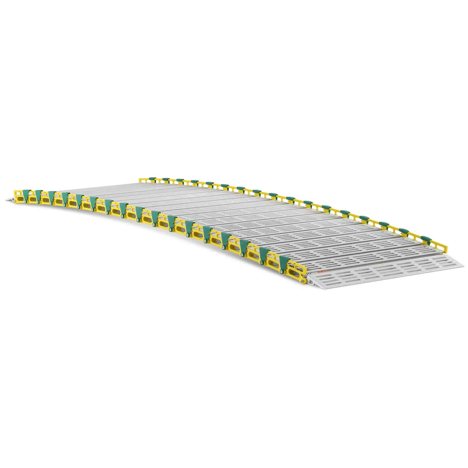 Die mobile Alurampe MSW-ARL-06 von 10062 ist mit wenigen Handgriffen schnell aufgebaut und wieder zusammengefaltet. Trotz des geringen Gewichts ist sie mit bis zu 500 kg belastbar und damit vielseitig im Einsatz – zum Beispiel als  Rollstuhlrampe, als Laderampe oder als Auffahrrampe für Rasenmäher, Motorroller etc. Mit den Abmessungen von 3000 x 914 mm ist die Rampe dabei ideal für Gummiräder mit einem Durchmesser von mehr als 20 cm und sowohl im privaten Haushalt als auch in Geschäften, Praxen oder im Dienstleistungsbereich eine enorme Erleichterung.