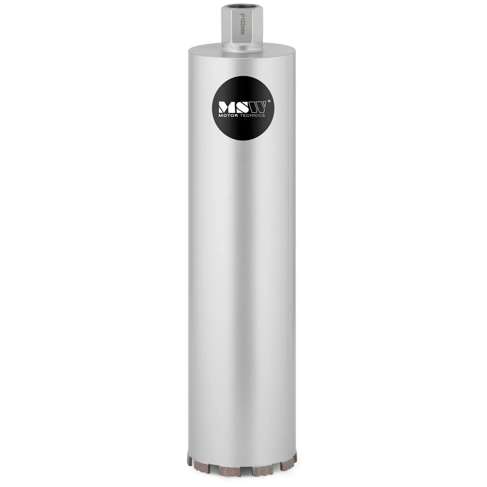 Die Diamantbohrkrone MSW-DCD-450/122-PRO ist geeignet zum Nass- und Trockenbohren. Mit diesem hochwertigen Zubehör für Ihre Kernbohrmaschine können Bohrungen bis zu einer Tiefe von 450 mm und einem Durchmesser von 122 mm durchgeführt werden. Dank der hohen Verschleißfestigkeit der Bohrkrone sind harte Materialien wie Beton, Stahlbeton, Ziegel, Klinker, Kalkstein oder Estrich kein Problem für die Bohrkrone. Die Bohrer und Schrauber von MSW stellen die ideale Lösung für ein präzises und effektives Bohren dar.