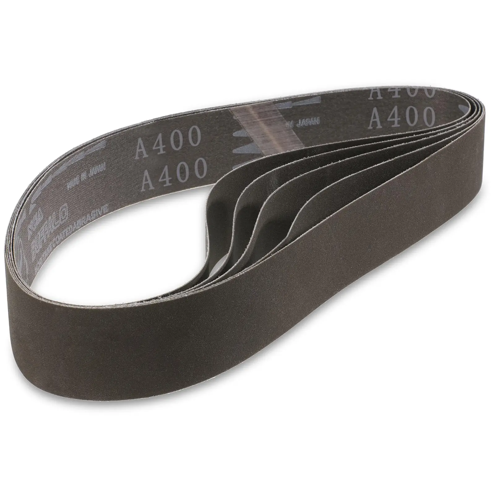 Jedes Schleifband besteht aus Aluminiumoxid, was eines der meistverbreiteten Schleifmittel darstellt: Es ist abriebstark, robust und damit im Alltag besonders ergiebig. Des Weiteren ist das Schleifmaterial mit einer stabilen Baumwollbasis versehen. Die 400er Körnung sorgt für ein sehr feines, glattes und gleichmäßiges Schleifergebnis, ganz getreu dem Motto „Je höher die Körnung, desto glatter das Finish.“.