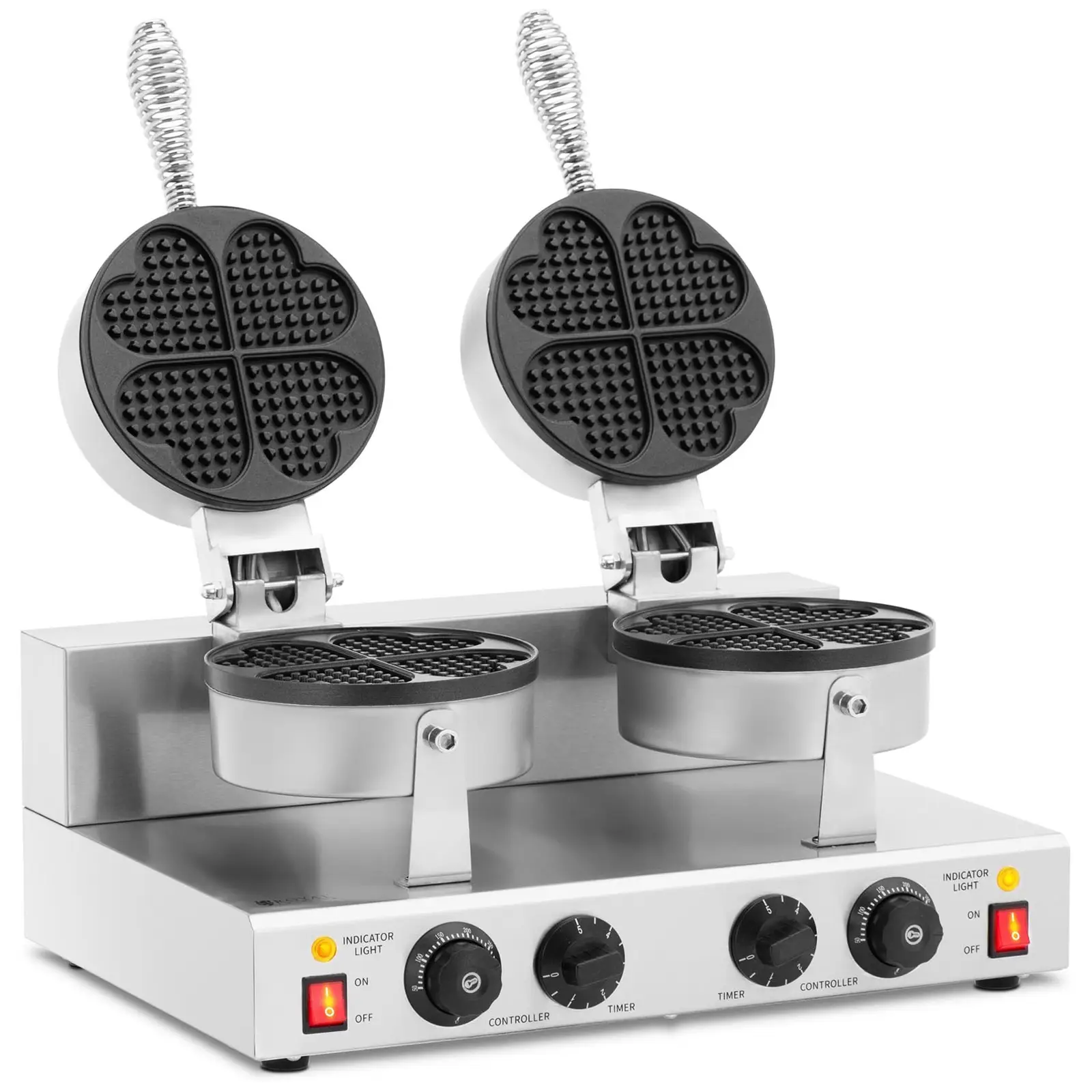 Doppel-Waffeleisen - herzförmig - 2 x 1000 W - 0 - 5 min Timer - Royal Catering