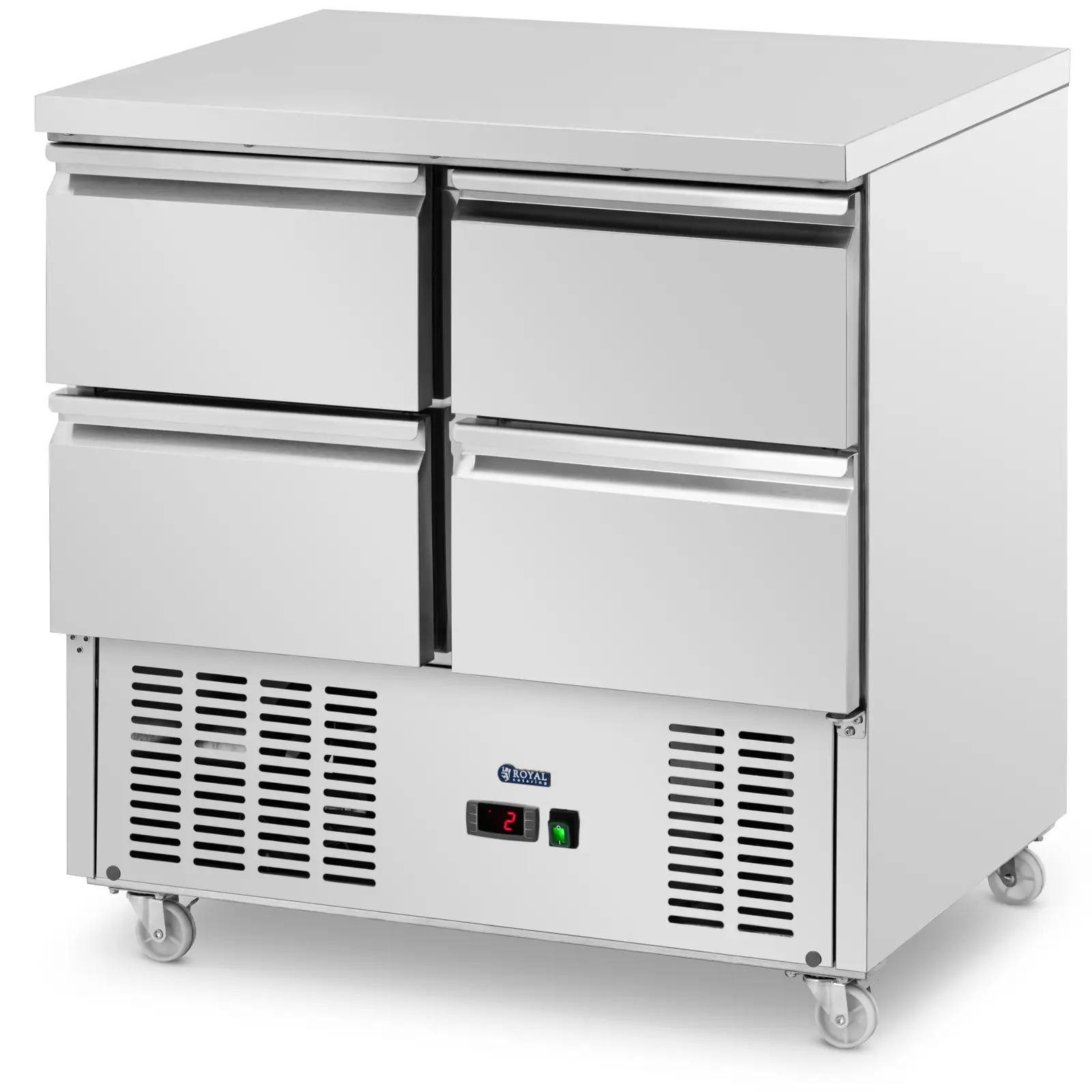 Kühltisch auf Rollen - 240 l - 4 Schubladen - 90 x 70 cm - Klasse C - Edelstahl - Royal Catering