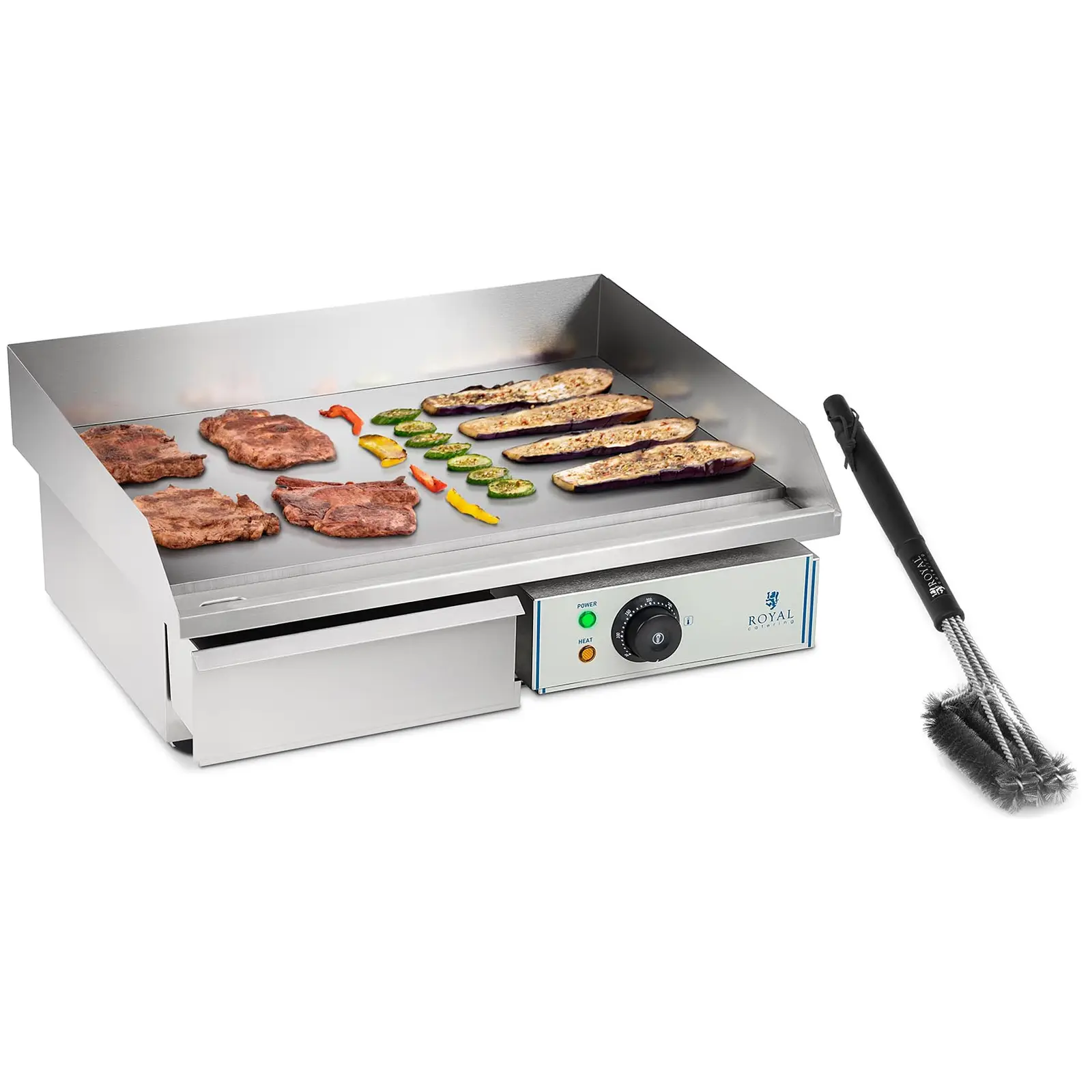 Mit der Elektro-Grillplatte RCEG-55 aus dem Gastronomiebedarf von Royal Catering können Sie Ihre Gäste das ganze Jahr über mit leckeren und herzhaften Grillspezialitäten verwöhnen. Der Grill eignet sich erstklassig für den Einsatz in Großküchen – von Restaurants und Imbissen bis zu Food Trucks. Für gründliche und professionelle Sauberkeit sorgt die Grillbürste, die im Set enthalten ist!