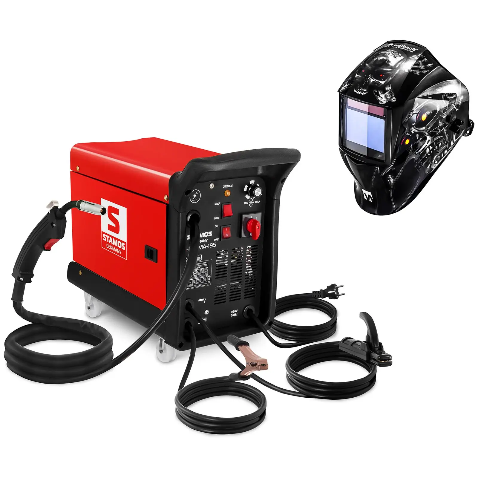 Mit dem Kombi-Schweißgerät S-MIGMA-195 von Stamos Germany erwartet Sie ein professionelles, innovatives und hochwertiges Gerät für verschiedene Reparatur- und Wartungsarbeiten. Es vereint die Schweißverfahren MIG, MAG, MMA und FCAW (Schweißen mit Fülldraht) und ist somit vielseitig einsetzbar. Die kompakte Bauweise, das robuste Gehäuse sowie die beiden Tragegriffe machen das S-MIGMA-195 zum idealen Begleiter in der Werkstatt oder auf der Baustelle.