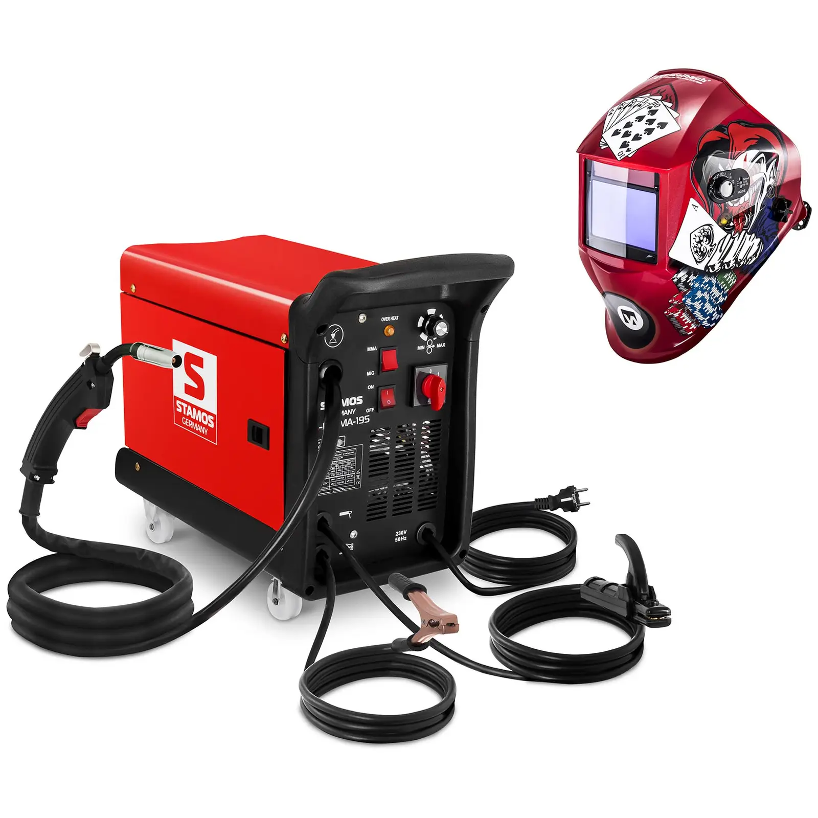Mit dem Kombi-Schweißgerät S-MIGMA-195 von Stamos Germany erwartet Sie ein professionelles, innovatives und hochwertiges Gerät für verschiedene Reparatur- und Wartungsarbeiten. Es vereint die Schweißverfahren MIG, MAG, MMA und FCAW (Schweißen mit Fülldraht) und ist somit vielseitig einsetzbar. Die kompakte Bauweise, das robuste Gehäuse sowie die beiden Tragegriffe machen das S-MIGMA-195 zum idealen Begleiter in der Werkstatt oder auf der Baustelle.