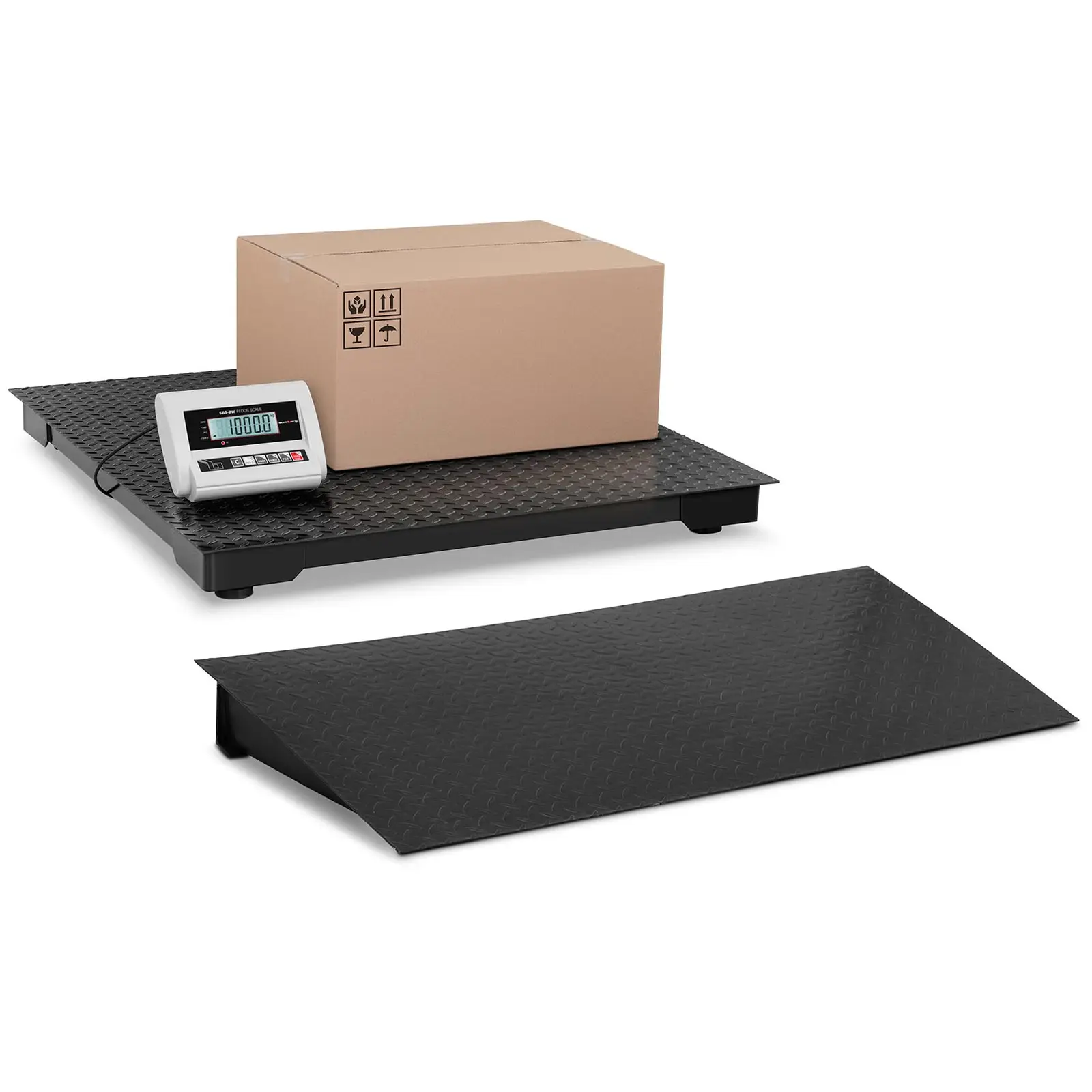 Auf der Bodenwaage im Set mit einer tragfähigen Rampe wiegen Sie bequem selbst schwere Gewichte. Die große 1 x 1 m Wiegefläche bietet dabei genügend Platz für größere Objekte. Mit einer Kapazität von 1000 kg und einer Genauigkeit von 500 g ist die Industriewaage perfekt für den Einsatz im Lagerhaus, im Großhandel, in der Industrie oder für den Handwerk. Die Waage ist bereits kalibriert und sofort einsatzbereit.